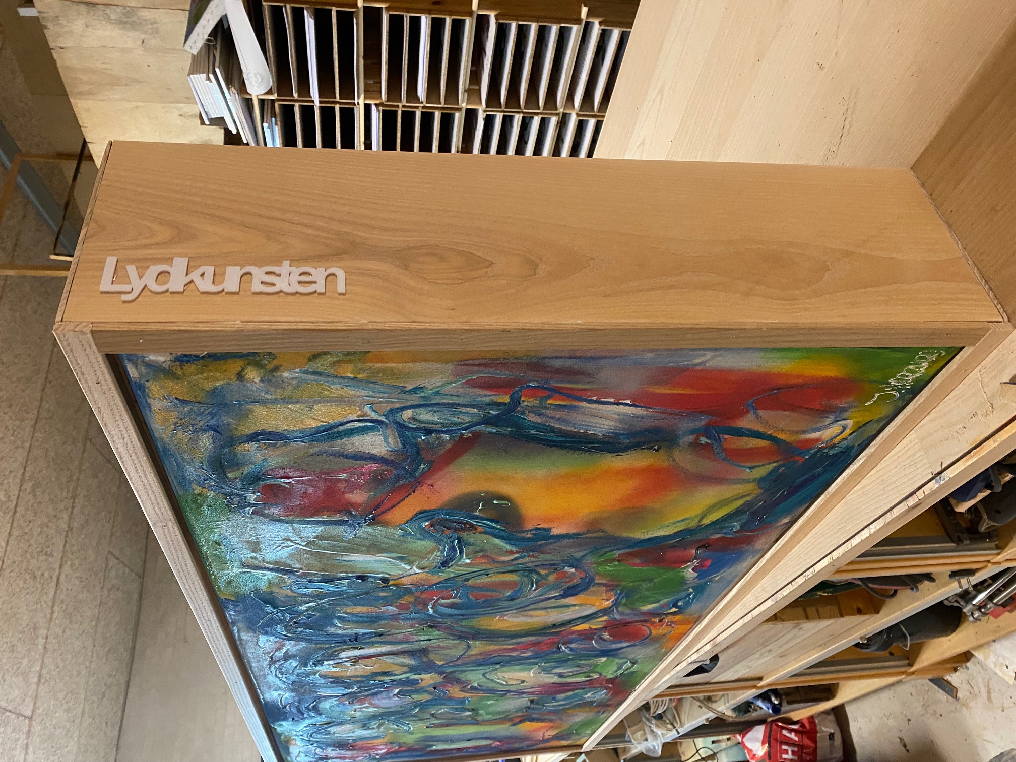 Så hvis man ikke vil have et stort anlæg til at stå og fylde i stuen kan man hænge kunstværket op og få lyd og billede på en gang.